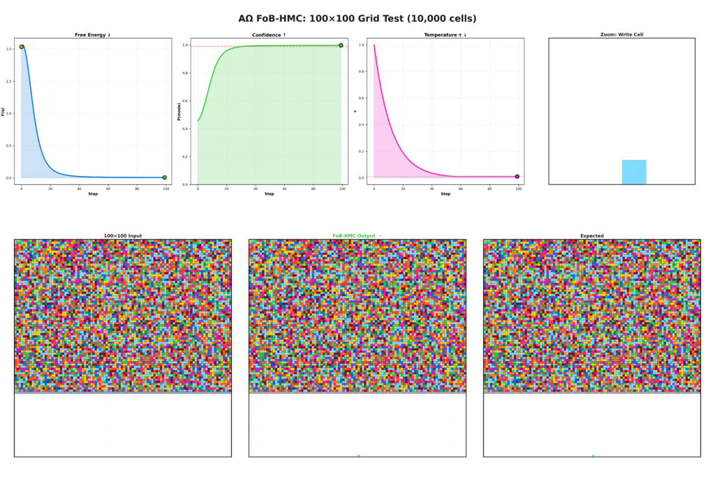 Only once the belief field becomes globally consistent does a higher authority order forces ‘collapse’ to solution state to occur. Each row commits to a single structural phase and boundary synchronization propagates this resolution across the grid. The final 6×6 output emerges because all incompatible configurations (trajectories) have become ‘energetically’ (mathematically) inaccessible.