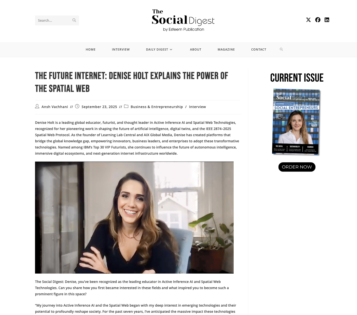 Read in 30+ countries and trusted by 100K+ readers, The Social Digest spotlights Denise Holt in their global edition dedicated to Women Empowerment - September 2025